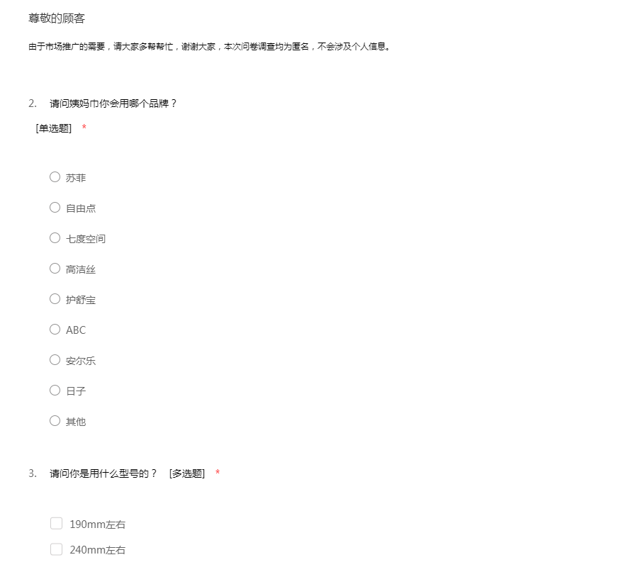 本次校园女性用品市场调查问卷主要是了解大学生使用女性卫生巾、卫生护垫的品牌、类型、频率及满意度等方面的问题。校园女性用品市场调查问卷是由我要调查网(http://www.51diaocha.com)提供。