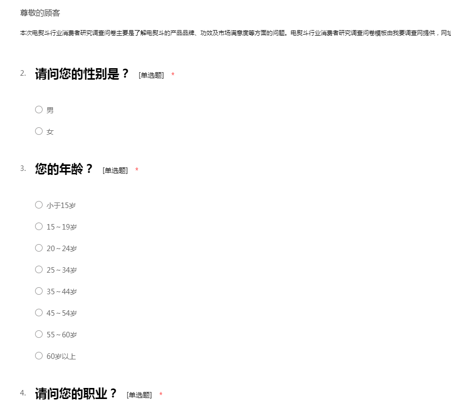 本次电熨斗行业消费者研究调查问卷主要是了解电熨斗的产品品牌、功效及市场满意度等方面的问题。
