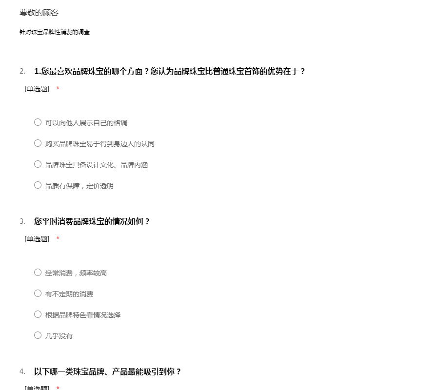 珠宝饰品调研问卷