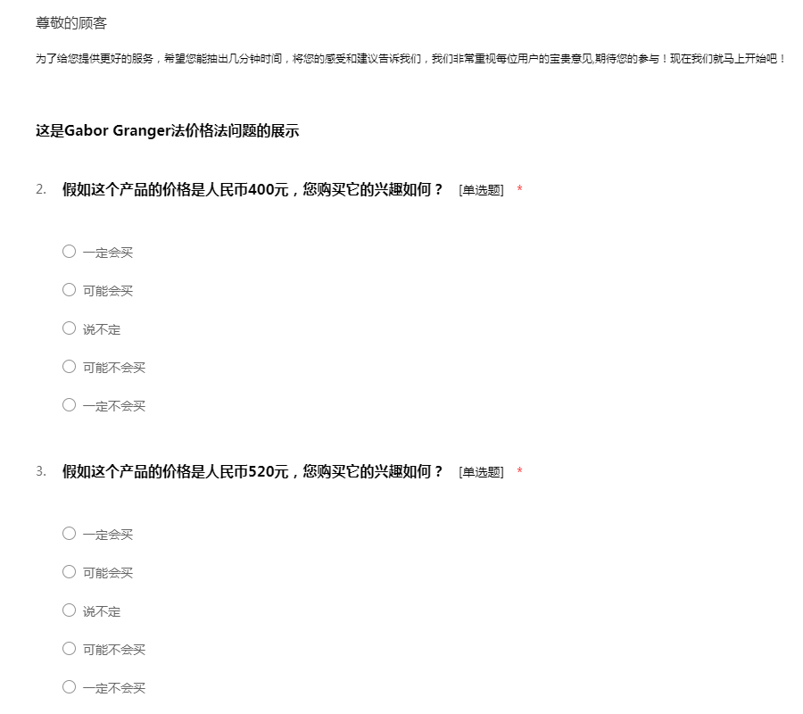 价格测试研究模板