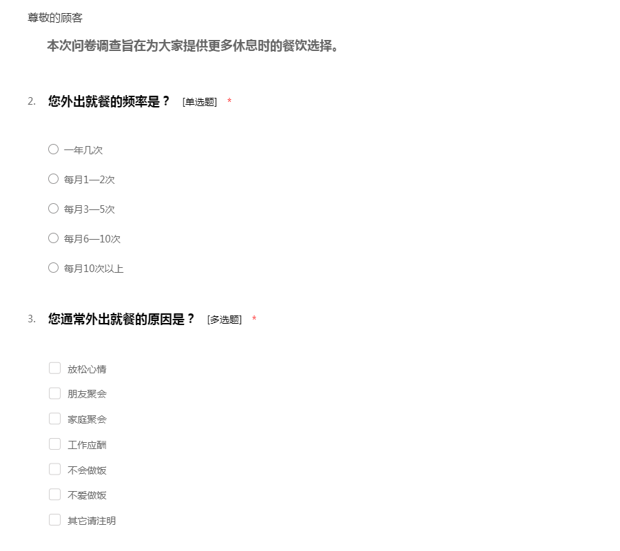 本次问卷调查旨在为大家提供更多休息时的餐饮选择。