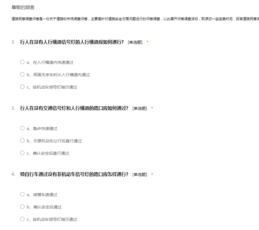道路民意调查问卷是一份关于道路的市场调查问卷,主要是针对道路安全方面问题进行的问卷调查,以此展开问卷调查活动,耽误您一些宝贵时间,回答道路民意调查问卷,谢谢您的合作。