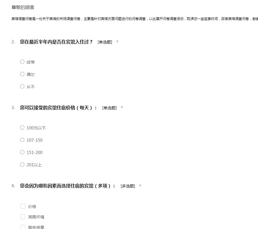 宾馆调查问卷是一份关于宾馆的市场调查问卷,主要是针对宾馆方面问题进行的问卷调查,以此展开问卷调查活动,耽误您一些宝贵时间,回答宾馆调查问卷,谢谢您的合作。