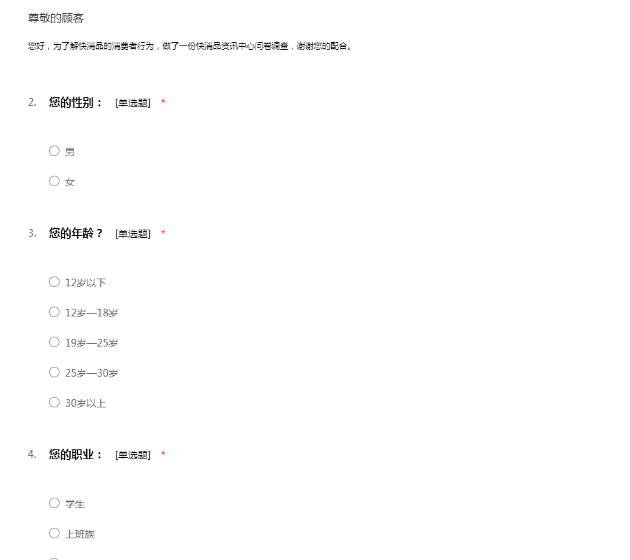 您好,为了解快消品的消费者行为,做了一份快消品资讯中心问卷调查,谢谢您的配合。