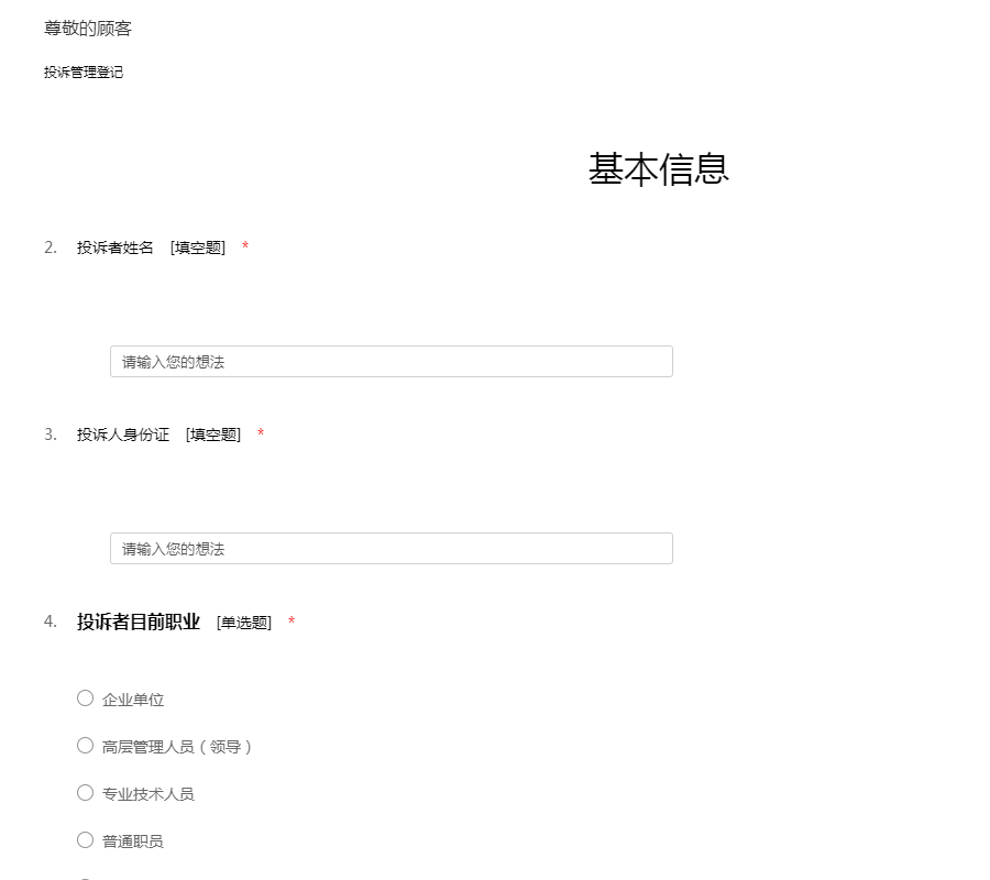 投诉管理登记