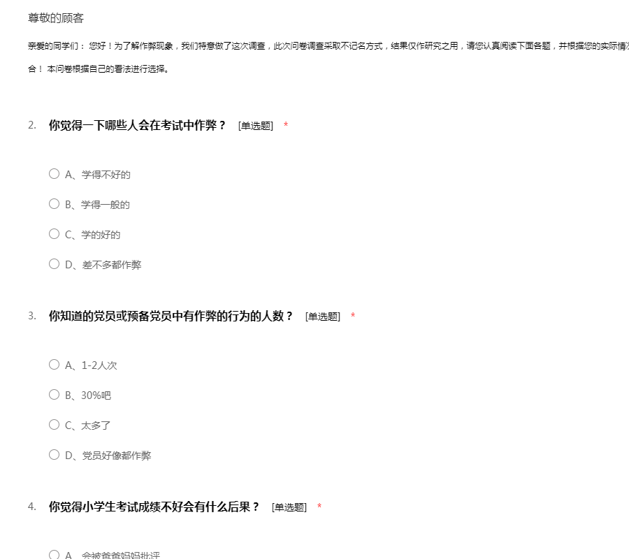 关于作弊现象调查问卷