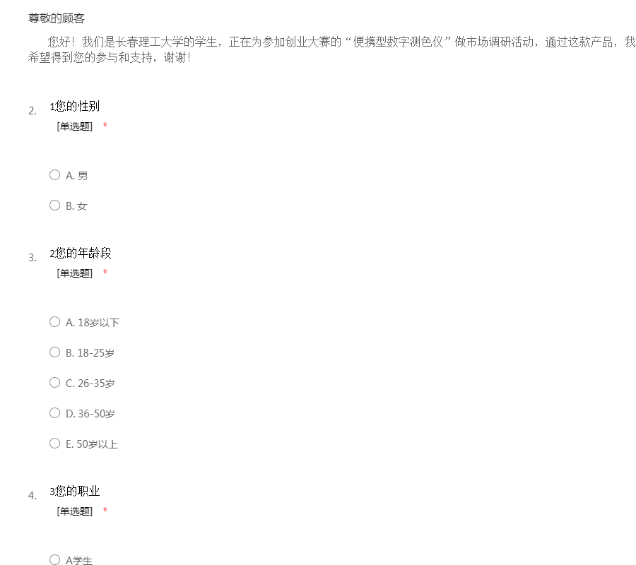 您好!我们是长春理工大学的学生,正在为参加创业大赛的“便携型数字测色仪”做市场调研活动,通过这款产品,我们可以方便快捷的测定物品的颜色!希望得到您的参与和支持,谢谢!