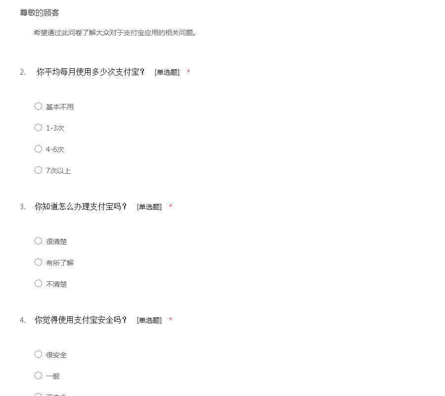 希望通过此问卷了解大众对于支付宝应用的相关问题。