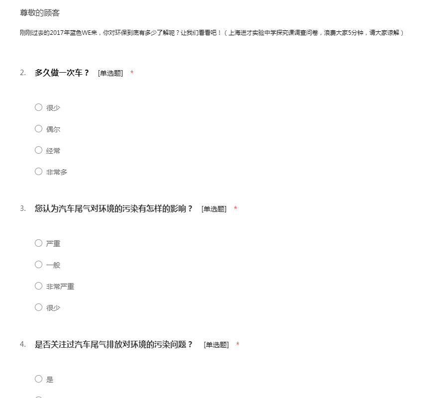 刚刚过去的2017年蓝色WE来,你对环保到底有多少了解呢?让我们看看吧!(上海进才实验中学探究课调查问卷,浪费大家5分钟,请大家谅解)