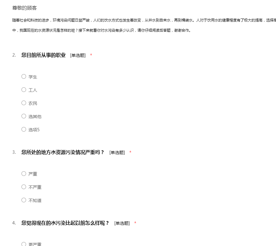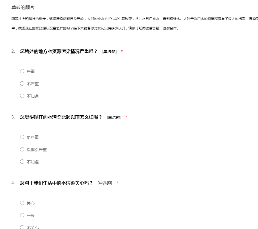 关于水污染的调查问卷