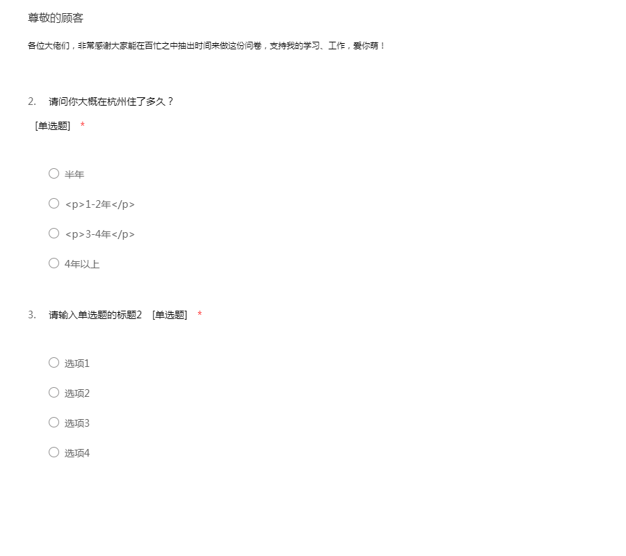各位大佬们,非常感谢你们在百忙之中抽出时间来做这份问卷,支持我们的学习、工作,爱你们!