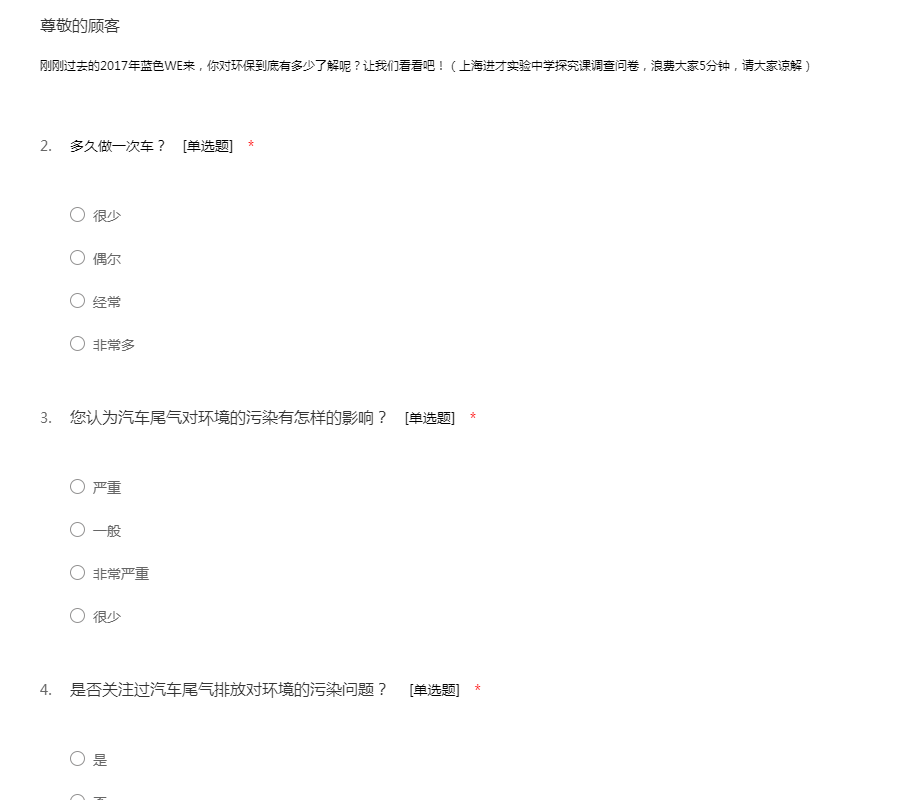 刚刚过去的2017年蓝色WE来,你对环保到底有多少了解呢?让我们看看吧!(上海进才实验中学探究课调查问卷,浪费大家5分钟,请大家谅解)