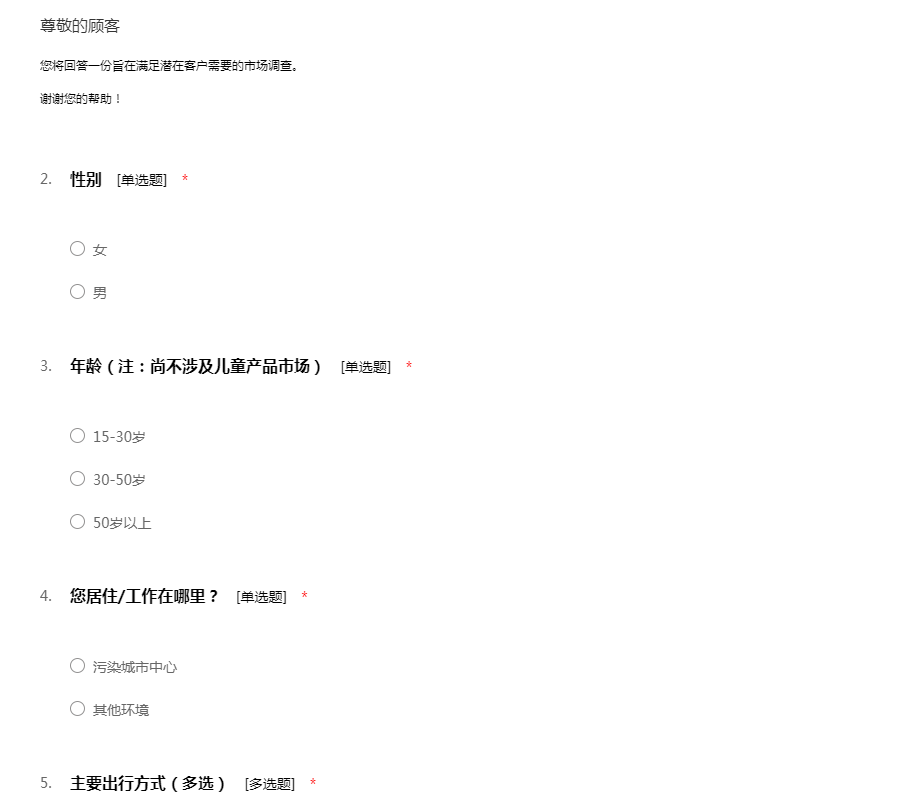 您将回答一份旨在满足潜在客户需要的市场调查。谢谢您的帮助!