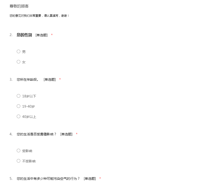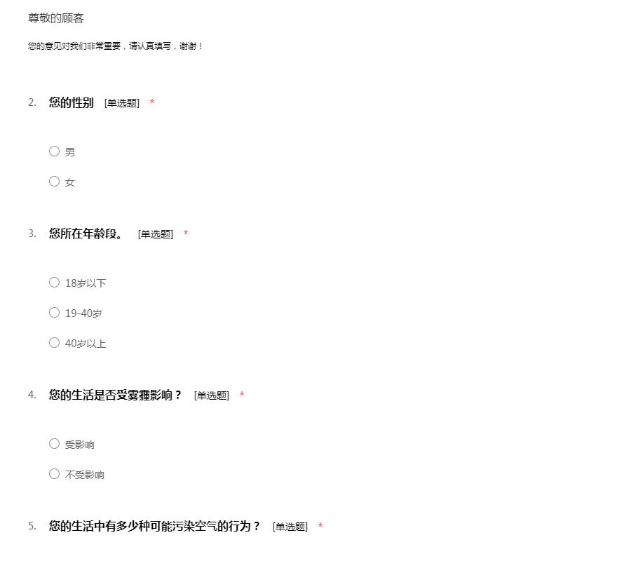 运城地区空气污染调查问卷