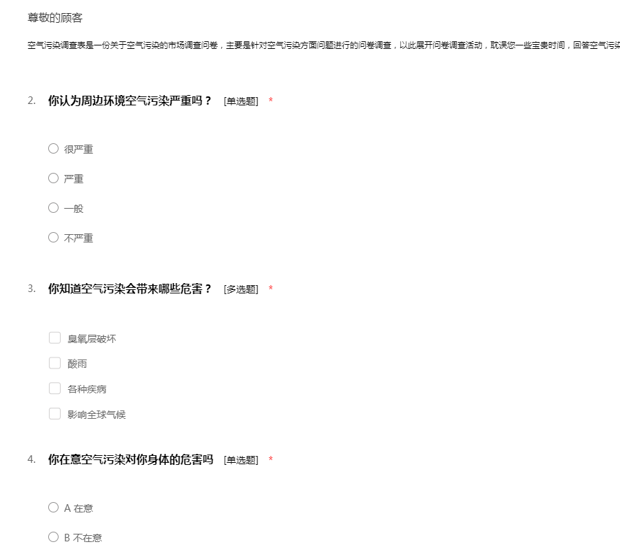 空气污染调查问卷