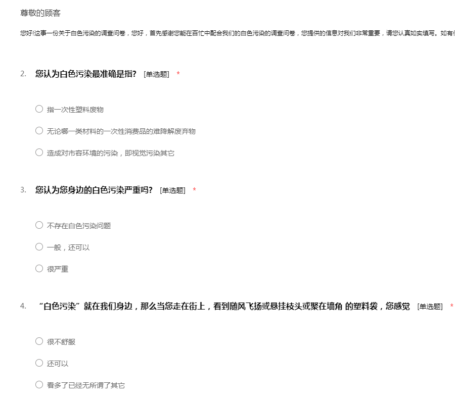 白色污染的调查问卷