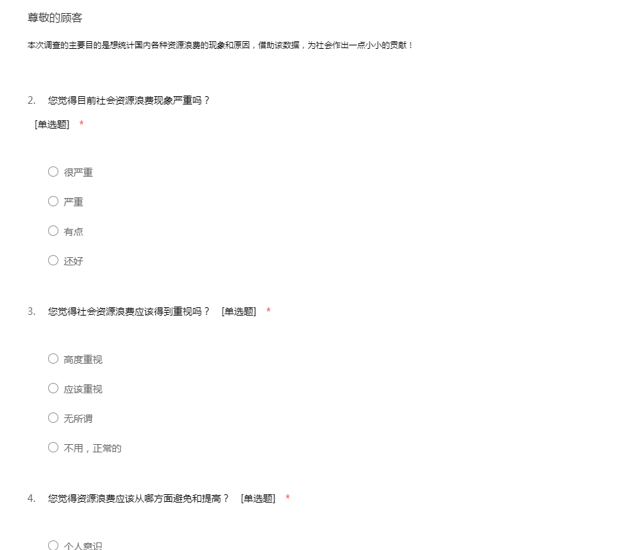 国民资源浪费现象调查问卷