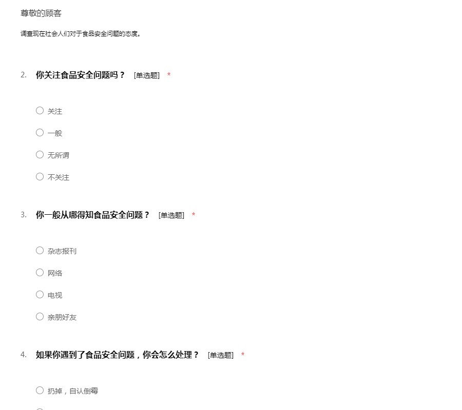 食品安全问题问卷调查