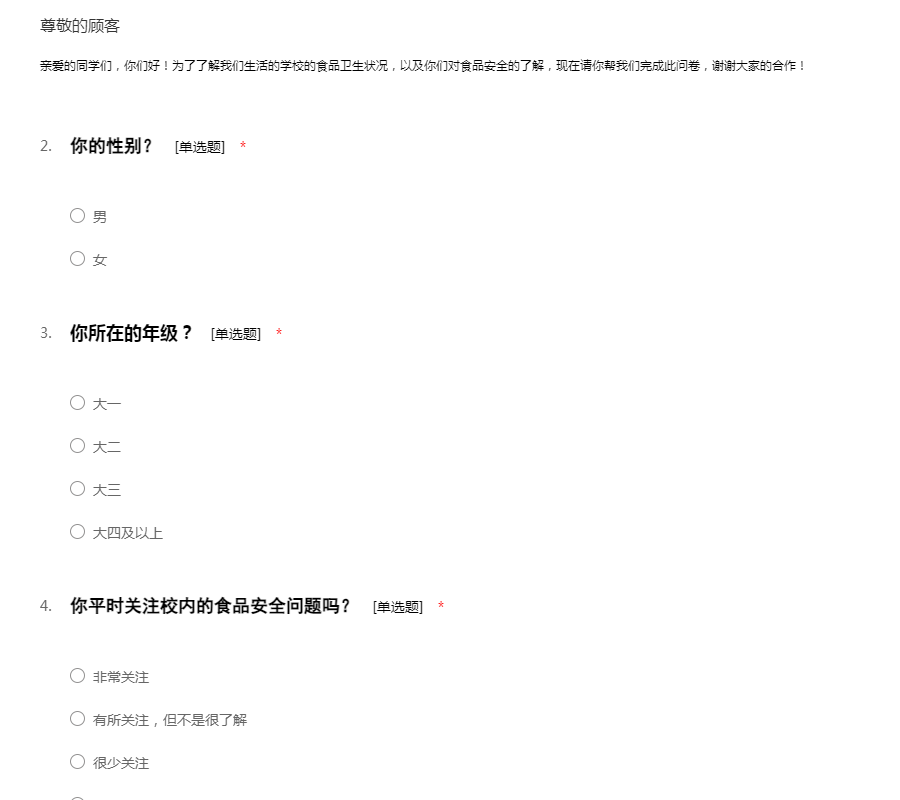 山财大三千计划食品安全线上问卷