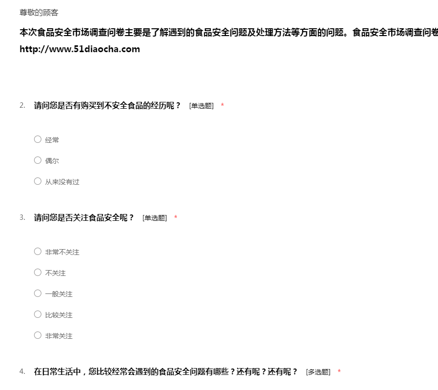食品质量安全调查问卷