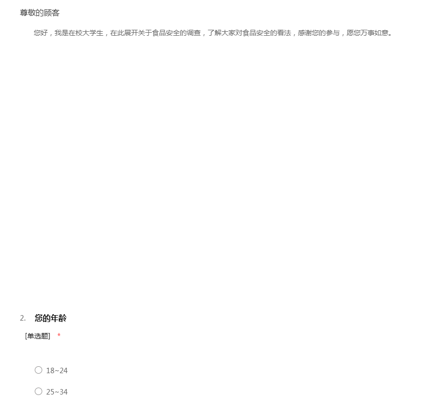 您好,我是在校大学生,在此展开关于食品安全的调查,了解大家对食品安全的看法,感谢您的参与,愿您万事如意。