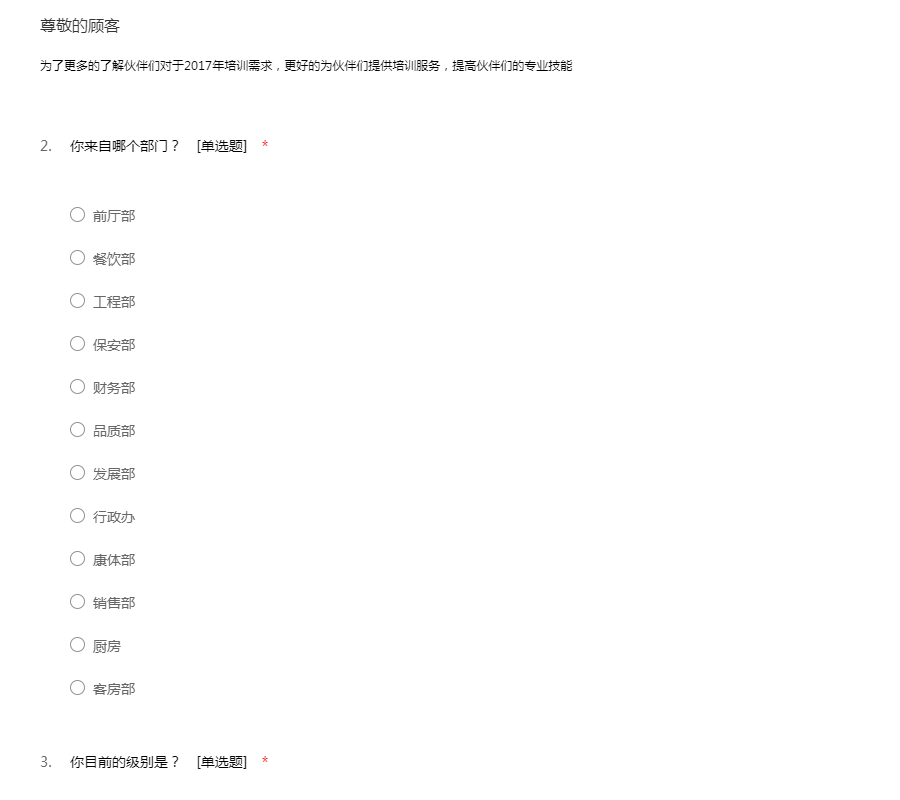 临海远洲国际大酒店2017年培训需求调研