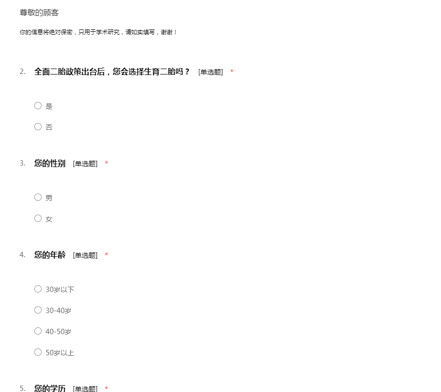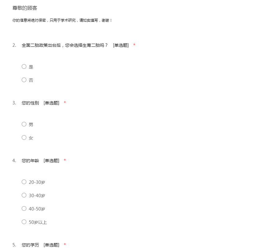 你的信息将绝对保密,只用于学术研究,请如实填写,谢谢!