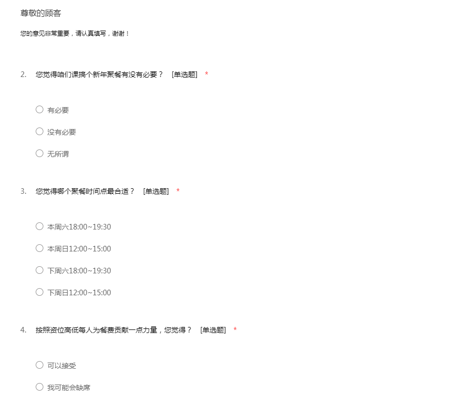俱乐部调查问卷