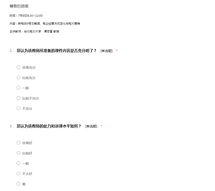 时间:7月8日8:30~12:00内容:新电改9号文解读、电企经营方式变化与电力营销主讲教师:华北电力大学 谭忠富 教授