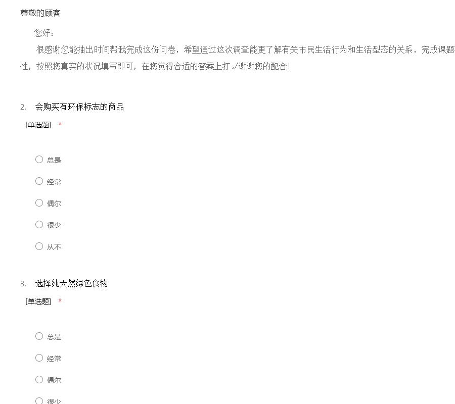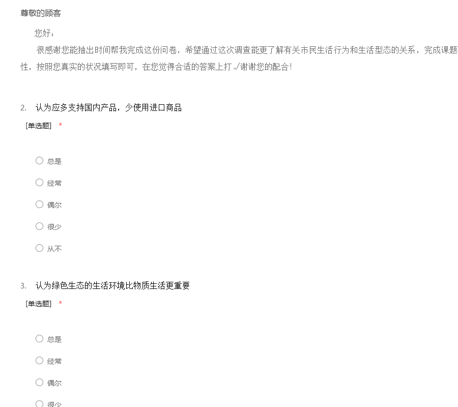 关于生态文明意识的调查问卷