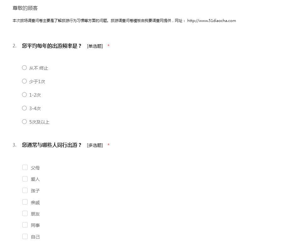 本次旅游行为习惯市场调查问卷主要是了解旅游行为习惯等方面的问题。