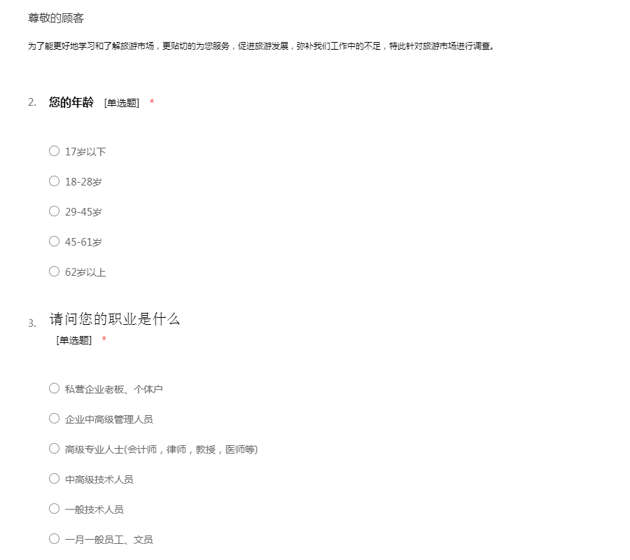 旅游目标市场调查问卷
