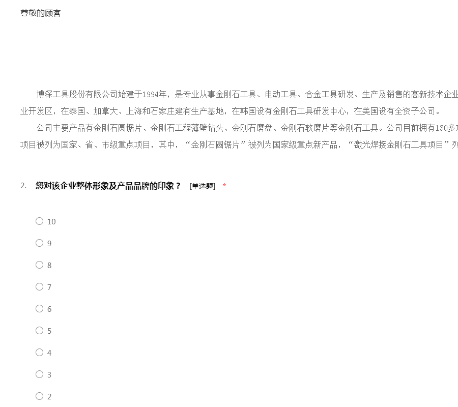 博深工具股份有限公司 金刚石圆锯片问卷调查