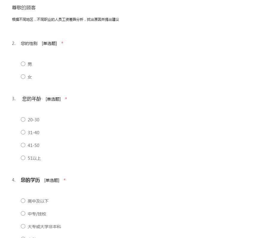 亲爱的员工,您好!为了了解公司的管理、工作环境、福利待遇等各方面对您的工作影响,以便公司能针对出现的问题和不足进行整改。本问卷无须填写姓名,所以请放心的如实填写。感谢您的配合!