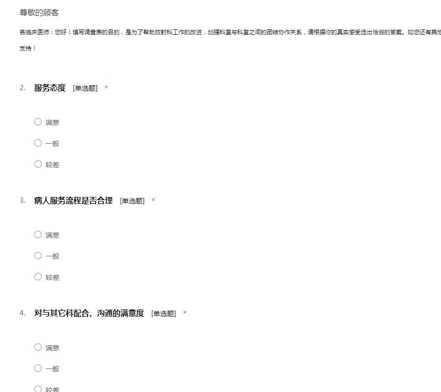 关于放射科工作满意度调查问卷表