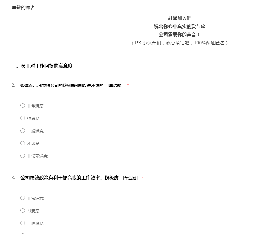赶紧加入吧 说出你心中真实的爱与痛 公司需要你的声音! (PS:小伙伴们,放心填写吧,100%保证匿名)