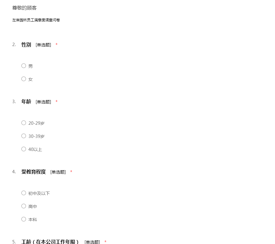 左岸园林员工满意度调查问卷