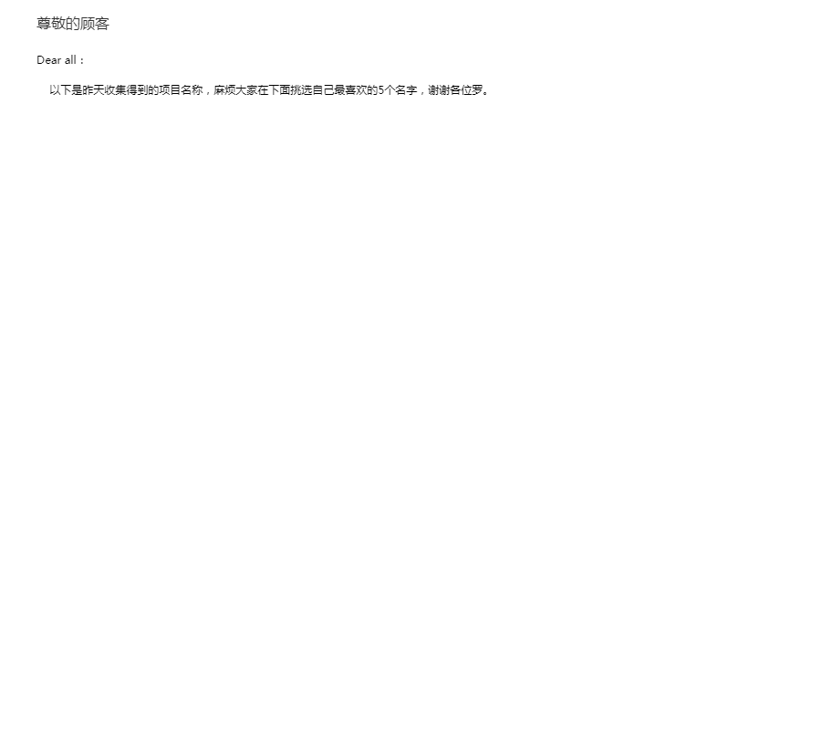 Dear all: 以下是昨天收集得到的项目名称,麻烦大家在下面挑选自己最喜欢的5个名字,谢谢各位罗。 PS:为了方便大家理解这个项目的背景,大家可以把它理解成他是一个活动类的淘宝,大家可以在里面获取各种各样的活动信息。