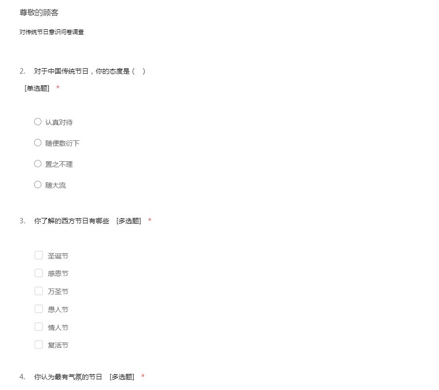 对传统节日意识问卷调查