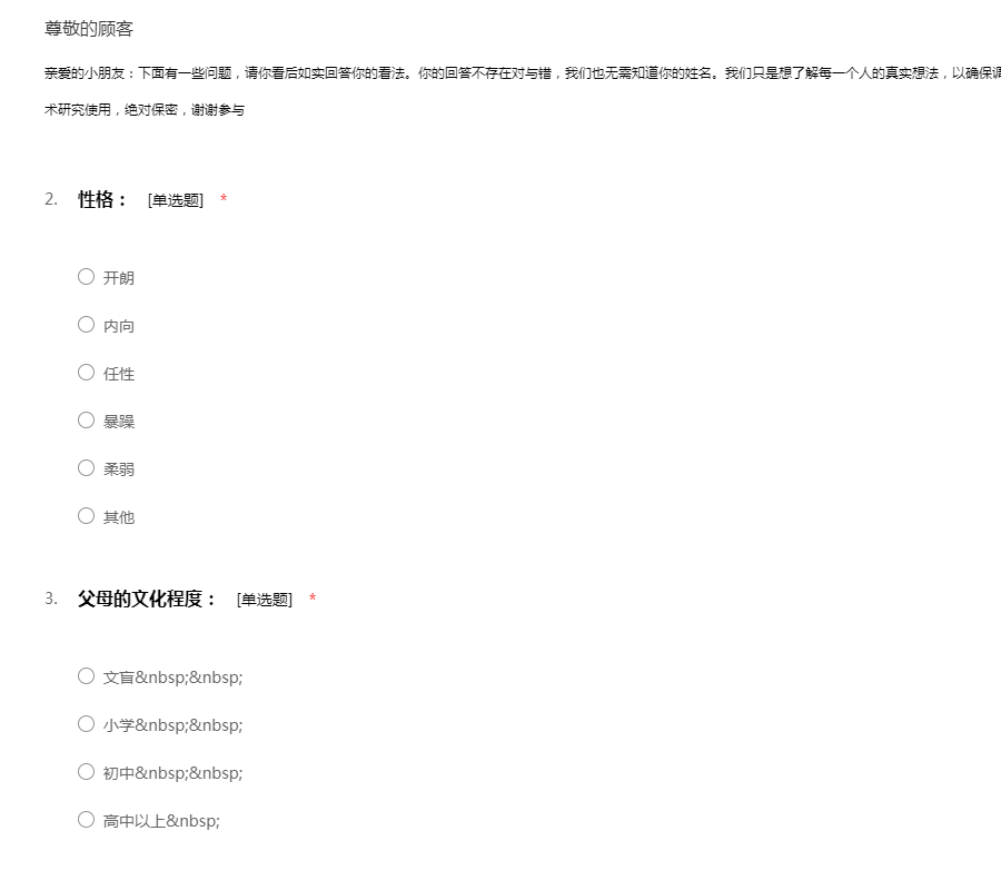 雷迪森and乡亲们: 我们是深圳电视台的记者,鉴于现在市场上儿童节目的日益火热,为了更好的了解年轻人对于儿童节目的看法,特制作了本份调查问卷,希望能得到您们最真实的想法和宝贵的意见。本问卷不记名,不对外,不会上头条,请您放心填写。