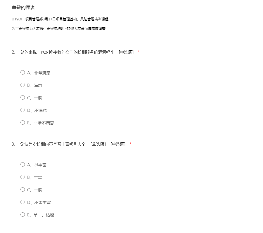 UTSOFT项目管理部3月17日项目管理基础、风险管理培训课程为了更好滴为大家提供更好滴培训~欢迎大家参加满意度调查