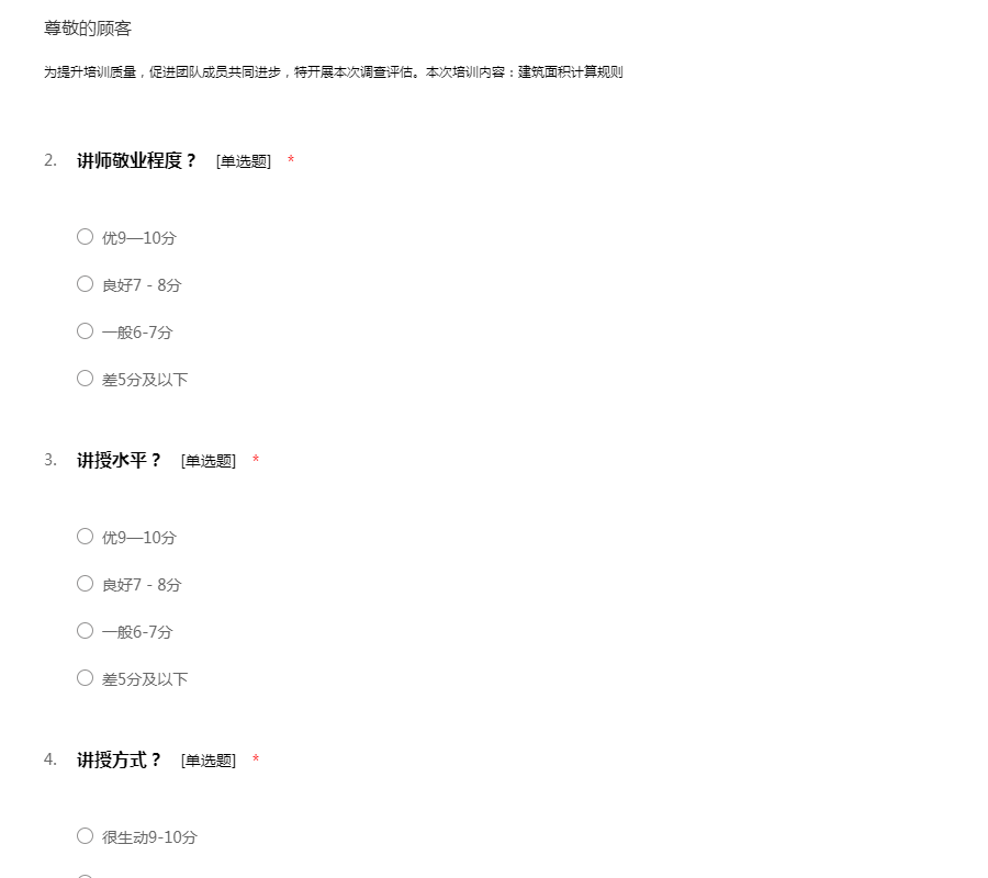 为提升培训质量,促进团队成员共同进步,特开展本次调查评估。本次培训内容:建筑面积计算规则