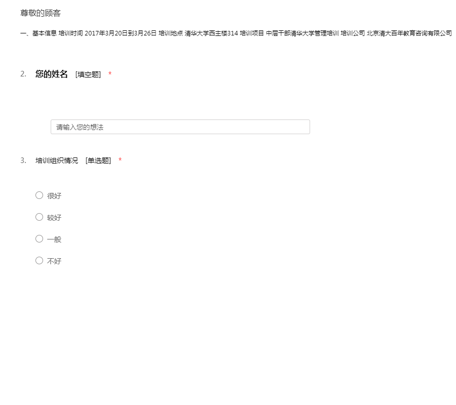 培训需求问卷 Training Needs Survey