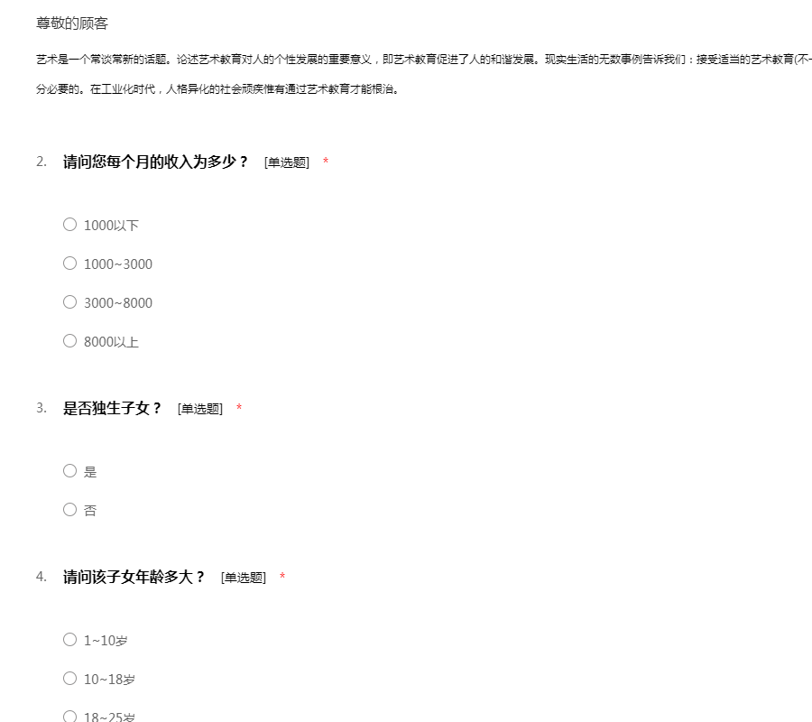 艺术培训家长调查问卷