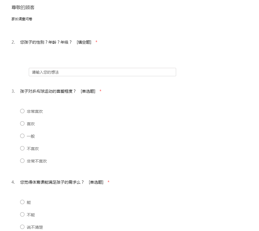 临清市少儿乒乓球业余培训现状问卷调查