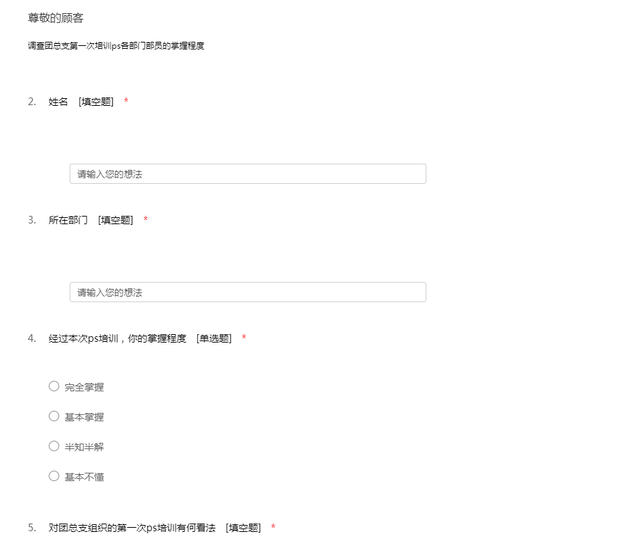 ps培训部员掌握程度调查
