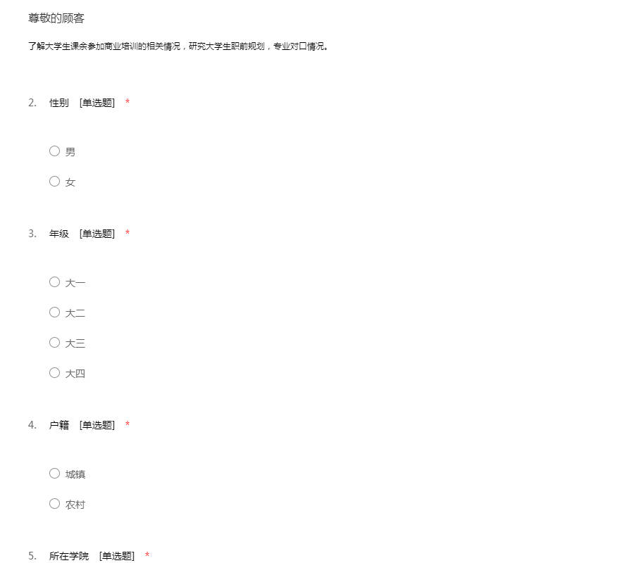 了解大学生课余参加商业培训的相关情况,研究大学生职前规划,专业对口情况。
