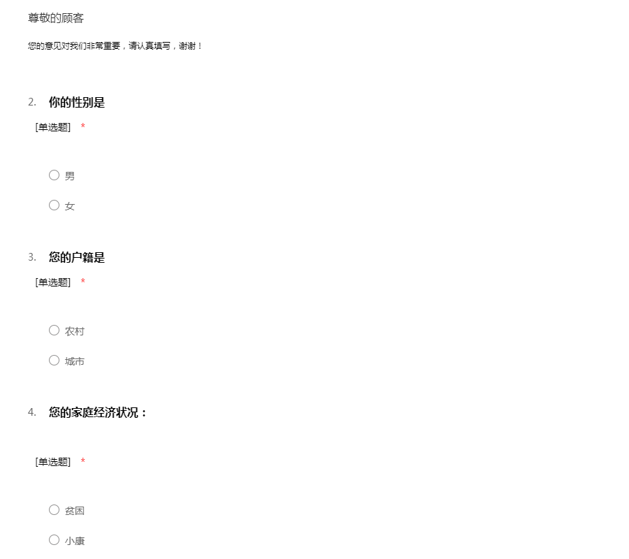 以下是我的一次调研活动调查问卷,您提供的答案将是我们宝贵的材料。举手之劳谢谢您!