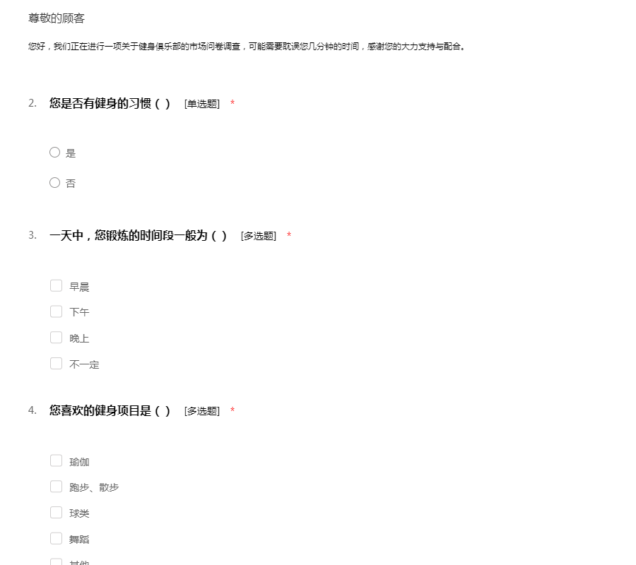 健身俱乐部市场调查问卷