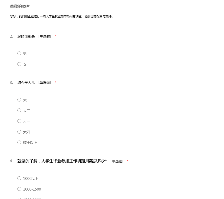 您好,我们和正在进行一项大学生就业的市场问卷调查,感谢您的配合与支持。